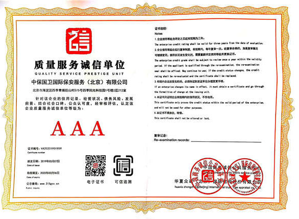 中保國衛(wèi)國際保安服務(wù)(北京)有限公司,屬中保國衛(wèi)集團(tuán)旗下子公司。能全方位的為大型客戶提供優(yōu)質(zhì)的安保、押運(yùn)服務(wù),是集人防和技防于一體的新型正規(guī)化綜合安保押運(yùn)服務(wù)企業(yè),提供人防、物防、技防、聯(lián)網(wǎng)報(bào)*、非武裝押運(yùn)等安防相關(guān)的一站式服務(wù)。 公司在國內(nèi)多省設(shè)立有分公司及分支機(jī)構(gòu),著重提升安全押運(yùn)、智能技術(shù)押運(yùn)及安全技術(shù)防范相關(guān)的服務(wù),業(yè)務(wù)范圍覆蓋全國一、二線城市、港澳地區(qū)以及海外地區(qū)。安保方面主要為政府機(jī)構(gòu)、金融機(jī)構(gòu)、企事業(yè)單位、醫(yī)療衛(wèi)生、高等院校、工業(yè)園區(qū)、大型商場、高檔住宅、智能商務(wù)樓、大型活動提供門衛(wèi)、守護(hù)、巡邏、押運(yùn)(非武裝)、安全檢查、保安特勤、私人護(hù)衛(wèi)、消防中控、安全技術(shù)防范、遠(yuǎn)洋護(hù)航等全方位服務(wù),同時(shí)面向國際市場,為中資企業(yè)在“一帶一路”沿線國家投資提供境外安保服務(wù)。 >> 更多內(nèi)容 |